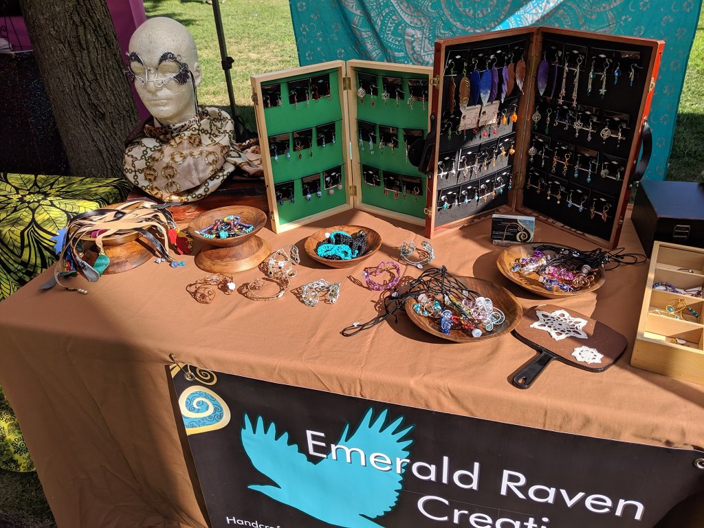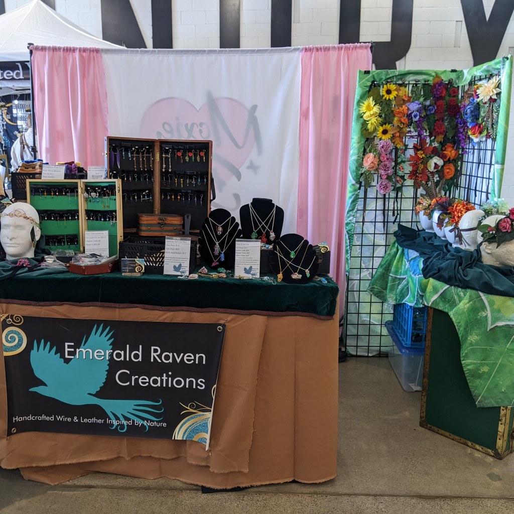 Sizes range from full 10’x10′ outdoor under canopy to 6′ tables. I am able to change my display items to match various themes and sizes.